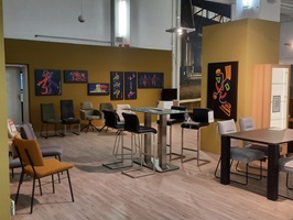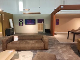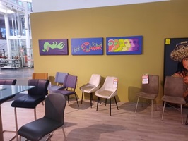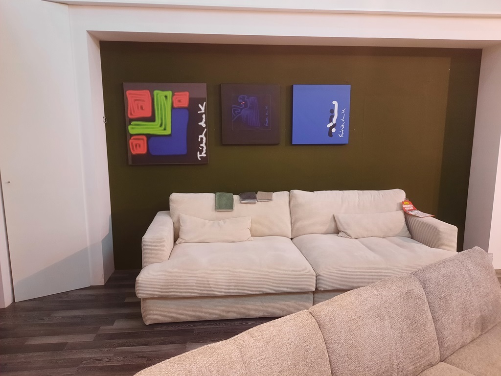 Seine farbintensiven Werke werden nicht nur ausgestellt – sie werden Teil der Räume. Zwischen Sofas, Tischen und Wohnlandschaften entfalten die Bilder ihre Wirkung und zeigen, wie Kunst und Einrichtung miteinander in Dialog treten können.