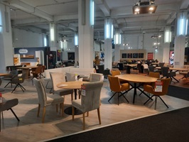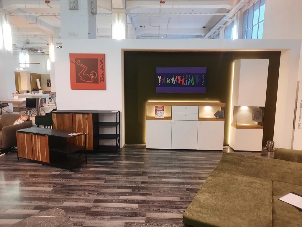 Die farbintensiven und erzählerischen Bilder des Künstlers werden bewusst in die verschiedenen Wohnwelten des Möbelhauses integriert. Dadurch entstehen lebendige Räume, in denen sich Möbel, Farben und Kunst gegenseitig ergänzen. Die Werke wirken nicht nur als Bilder an der Wand, sondern als Teil eines gesamten Wohngefühls.